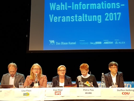 Vor jeder Wahl organisiert das Berliner Aktionsbündnis für Menschen mit Behinderungen „Das Blaue Kamel“ und die Berliner Landeszentrale für politische Bildung eine Wahl-Informations-Veranstaltung. Ich begrüße dieses Engagement sehr. Und wie schon die Jahre zuvor wird deutlich: Mensch mit oder ohne Behinderung will unser Gemeinwesen mitbestimmen – und was ist da bedeutsamer als die Bundestagswahl?